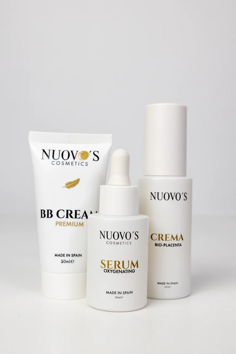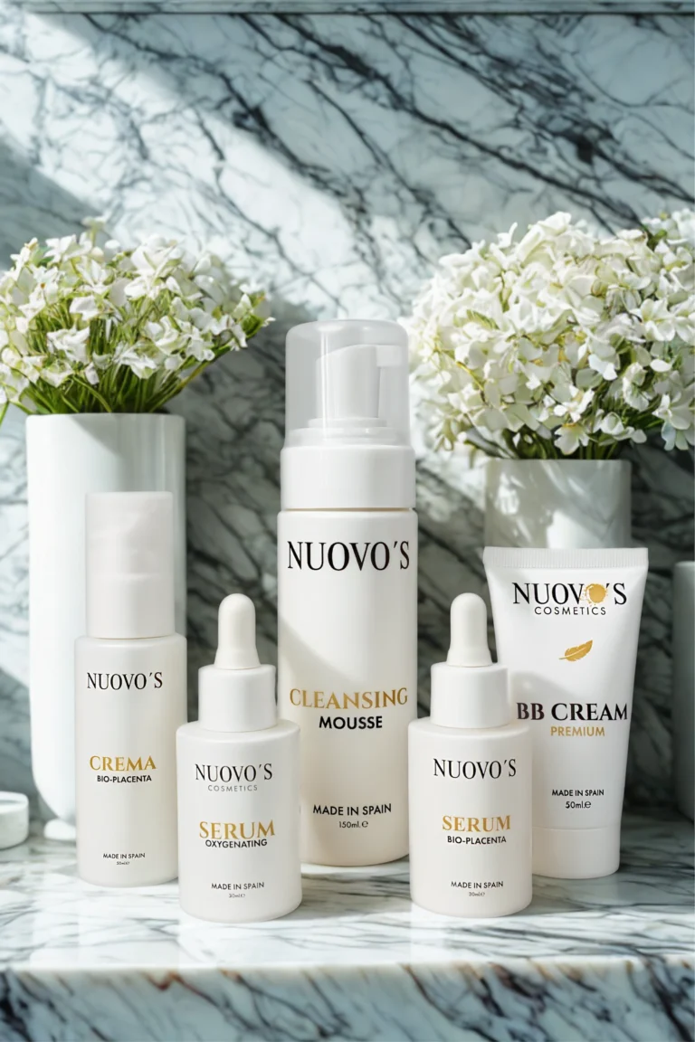 Un ritual complet, într-o singură alegere. All in One reunește cele mai apreciate produse Nuovo’s – mousse de curățare, cremă, seruri și BB Cream – pentru o experiență luxoasă de îngrijire, de la prima atingere până la ultimele note de hidratare și protecție.